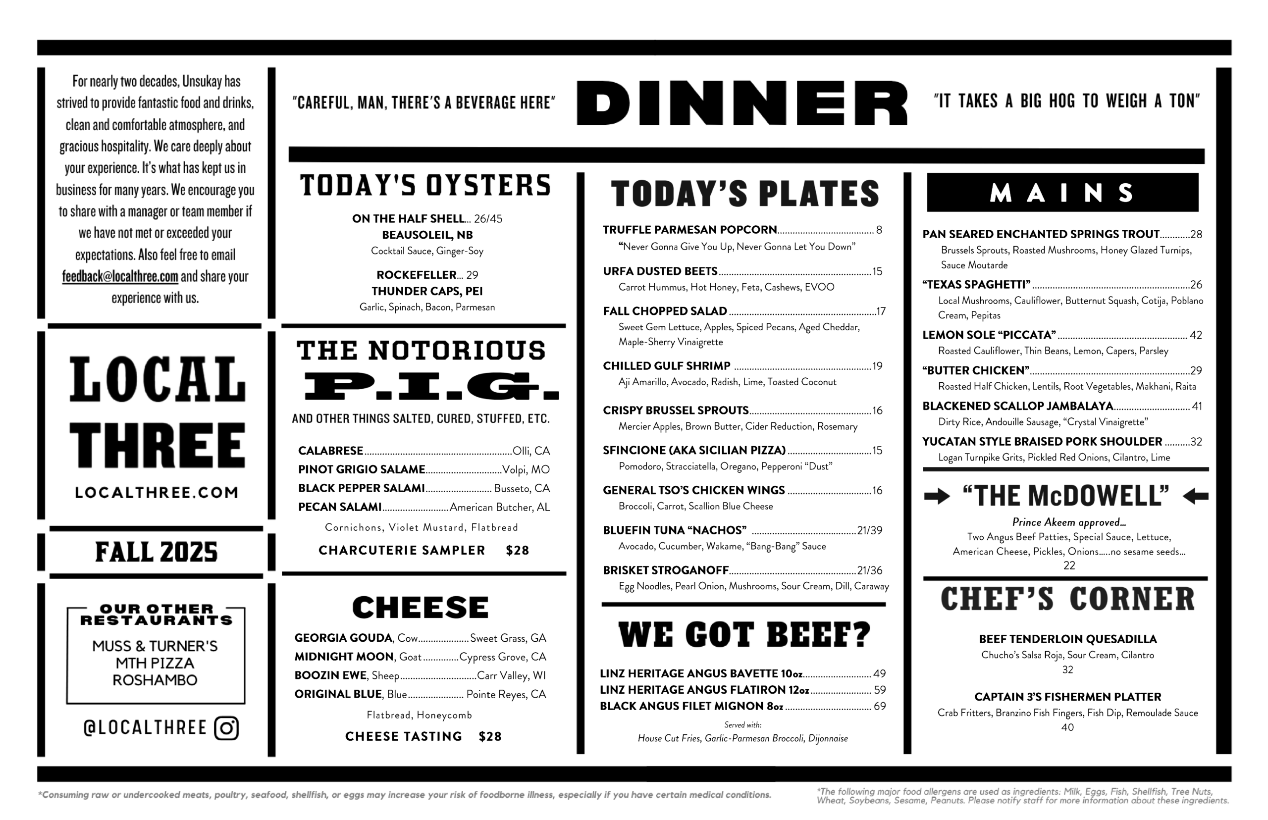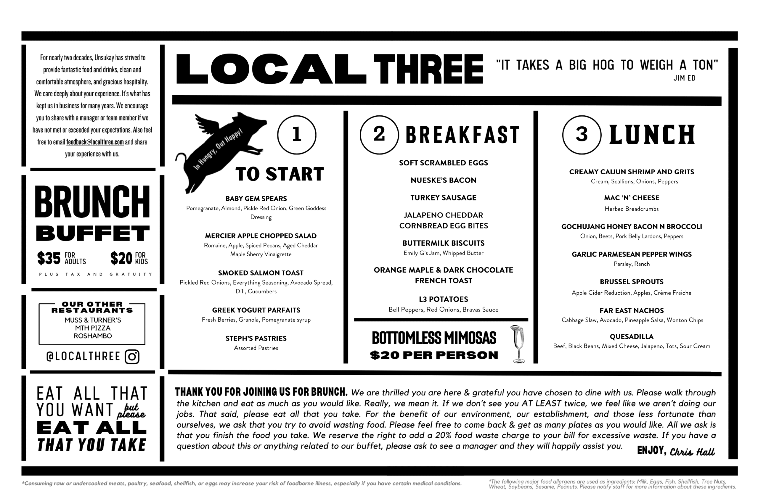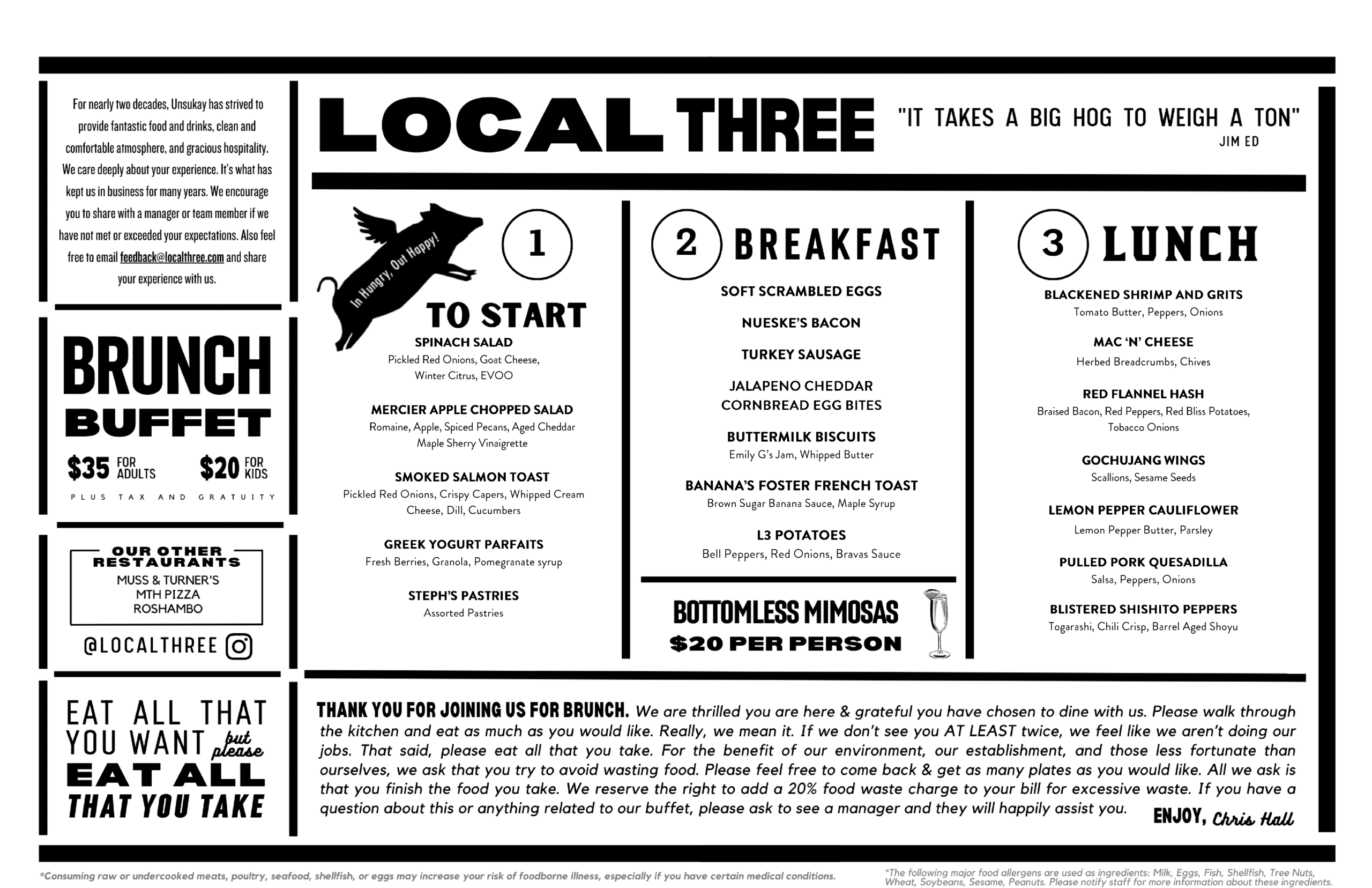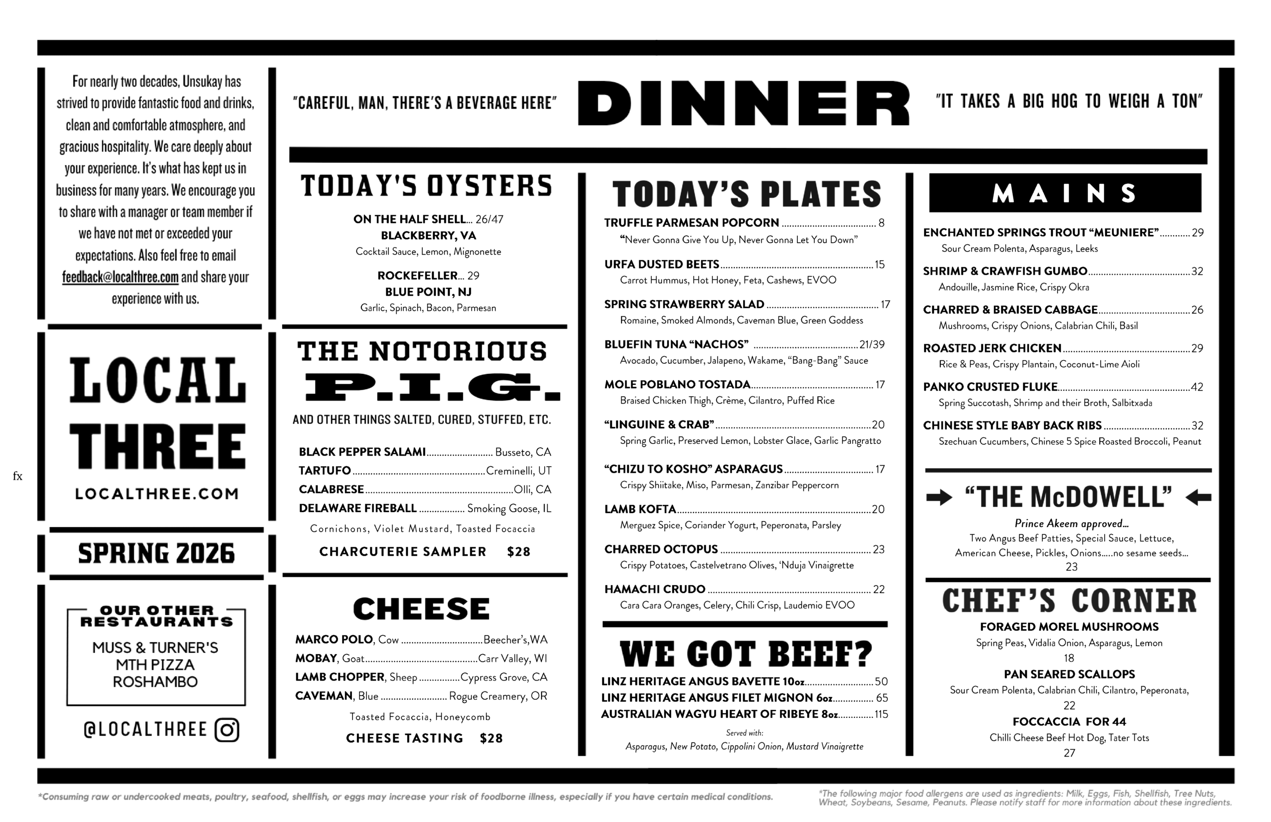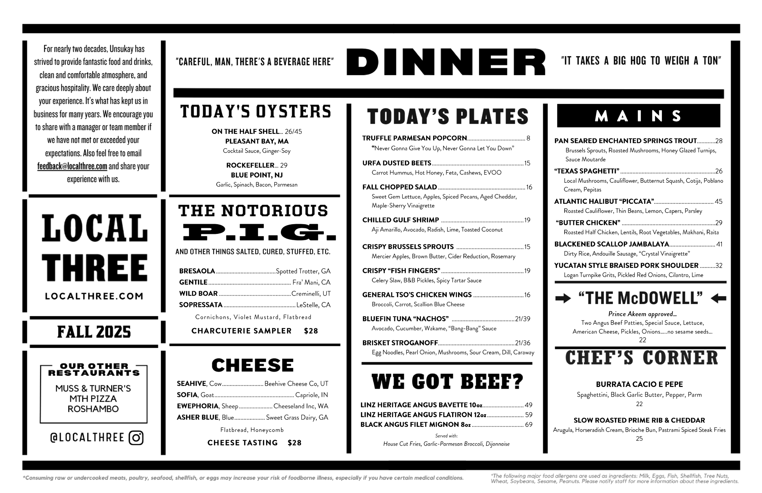 Our chefs like to keep things fresh (literally). The menus online are a solid guide, but not a legally binding document. The offerings below may be subject to change.
