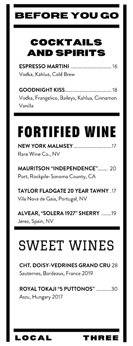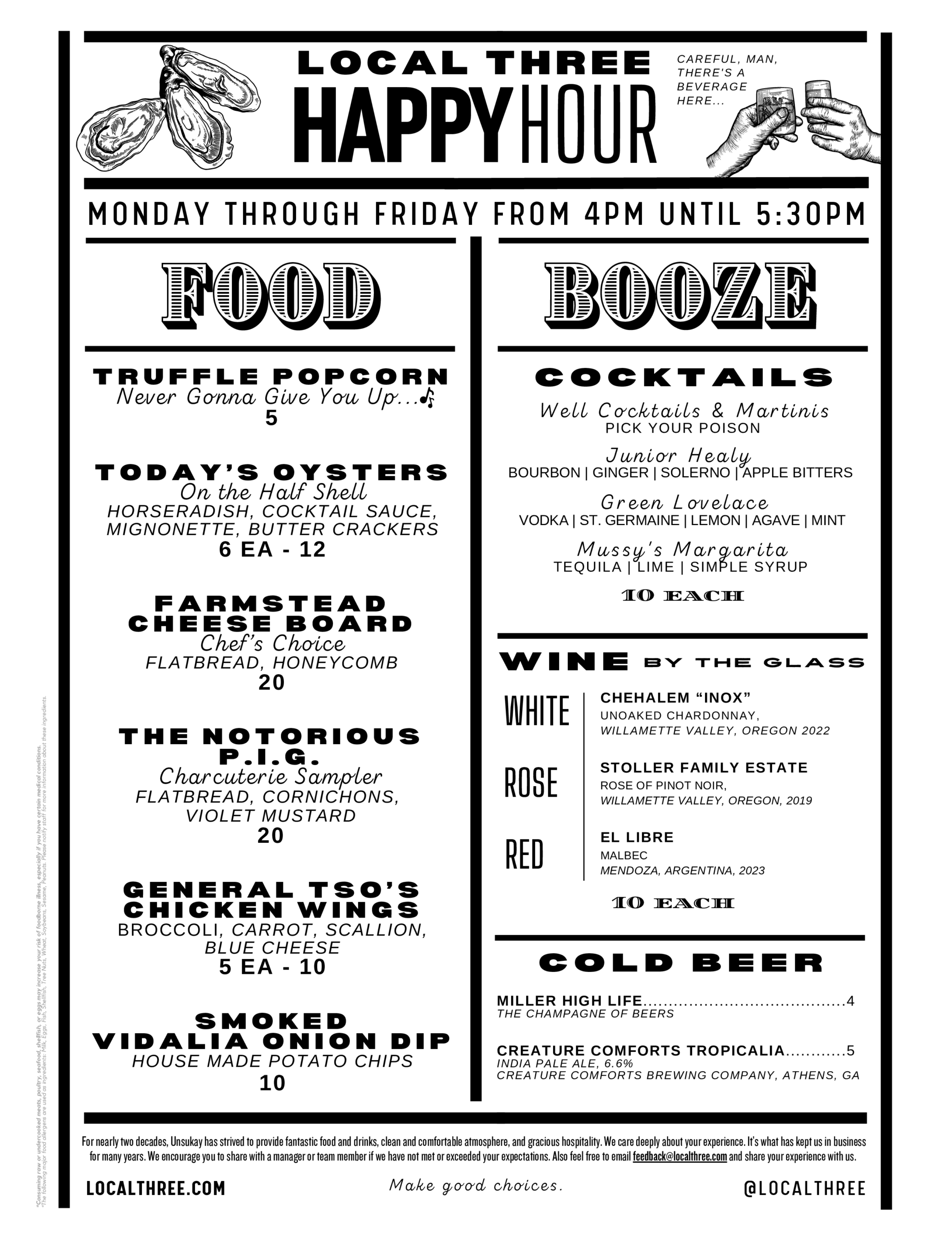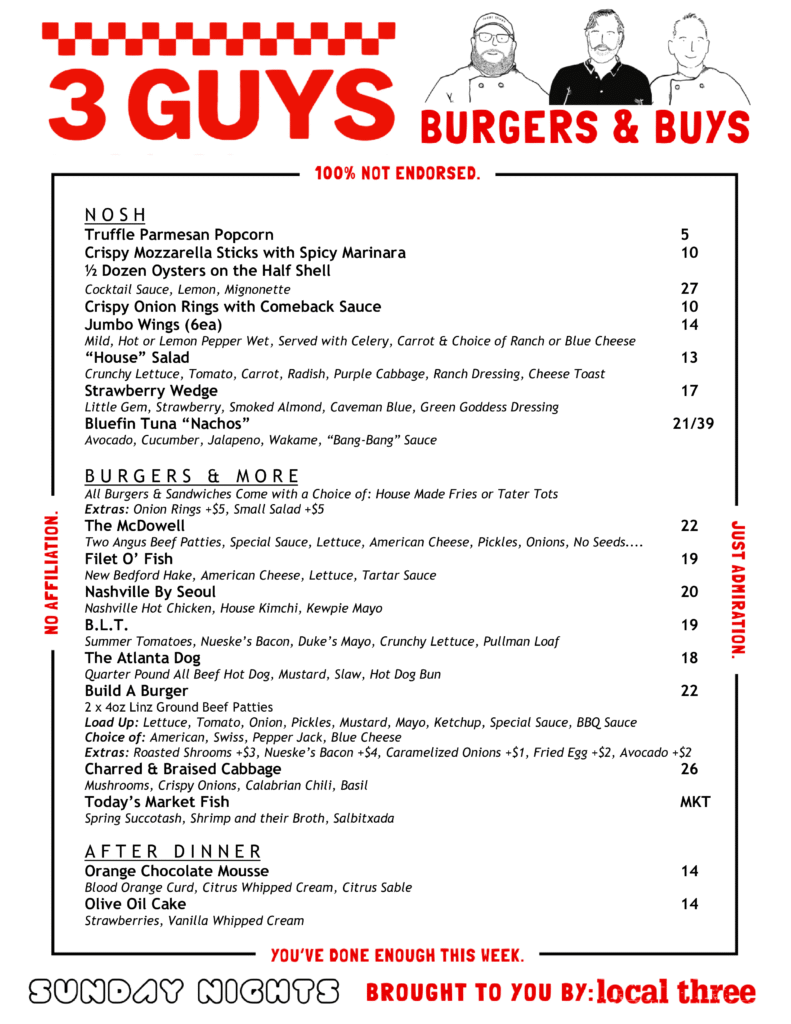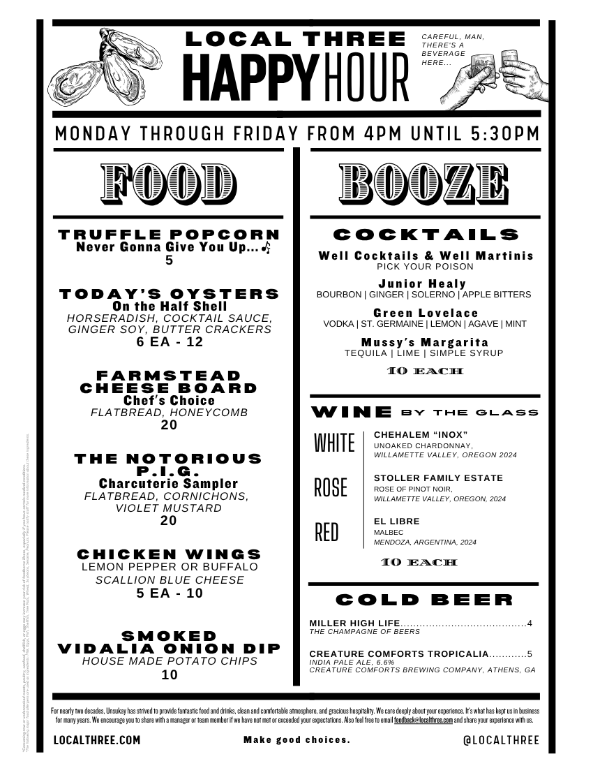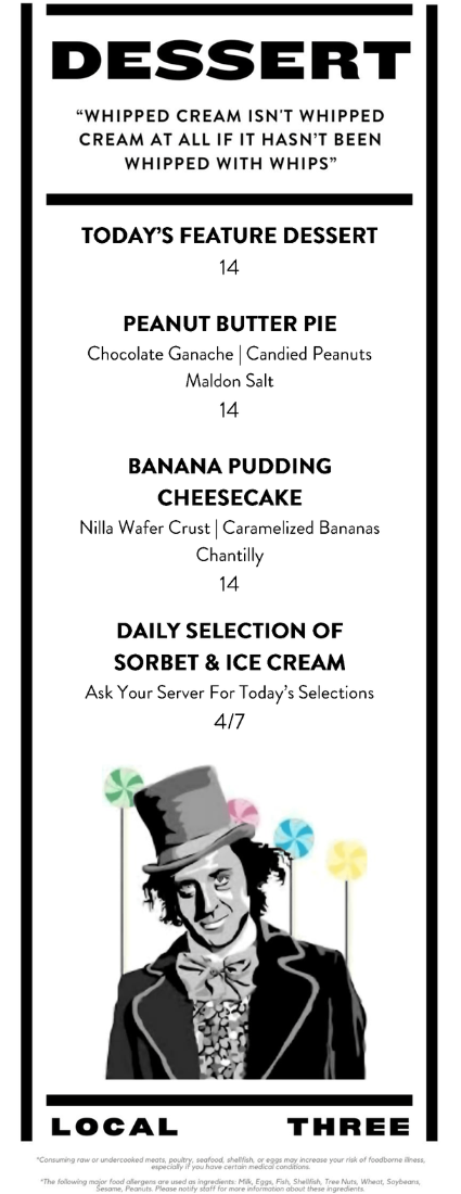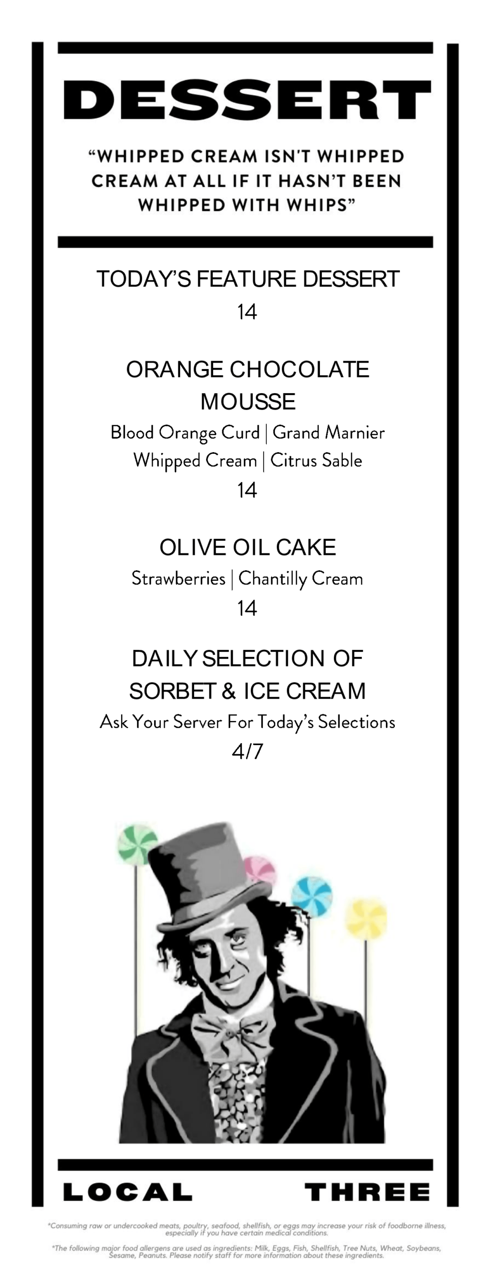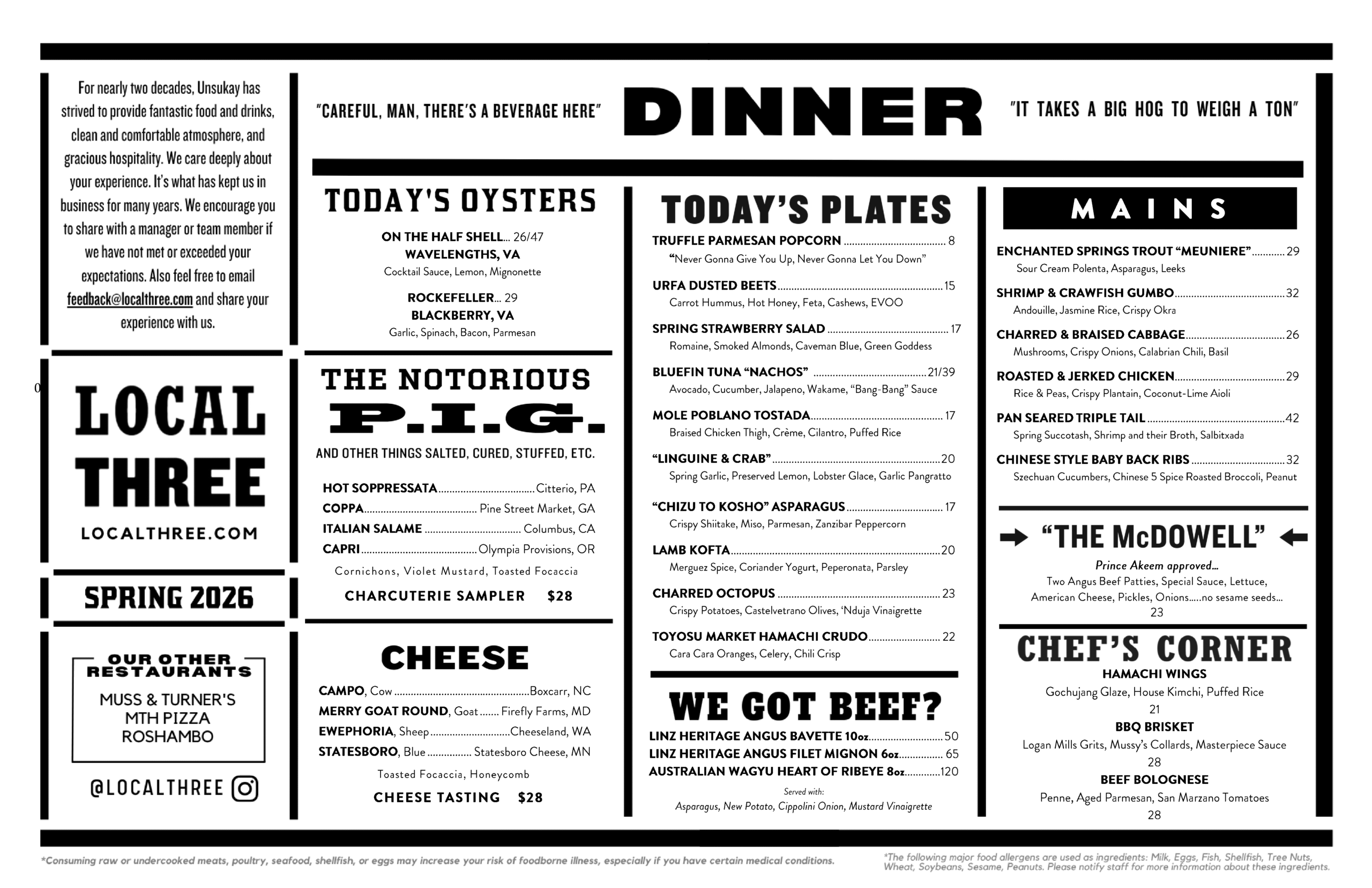 Our chefs like to keep things fresh (literally). The menus online are a solid guide, but not a legally binding document. The offerings below may be subject to change.